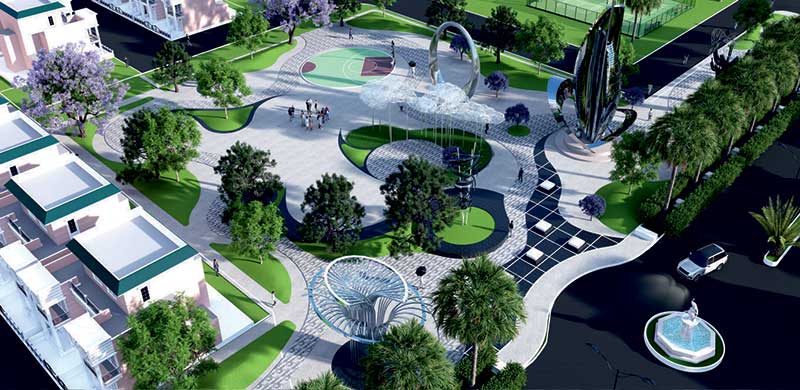 • ✓ Modern Aesthetic Features Such As Designer Benches, Street Lighting, Water Elements, Theme Paving, And Eco-friendly Urban Design And Landscaping